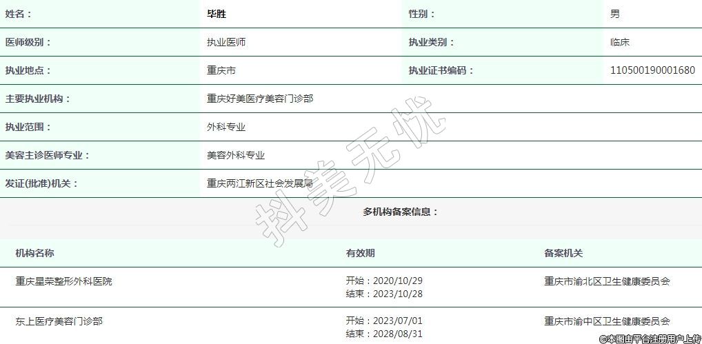 重慶東上醫(yī)療美容執(zhí)業(yè)醫(yī)師 -