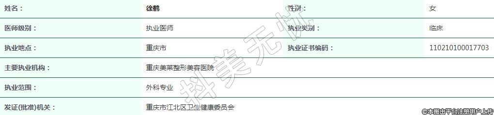 主要執(zhí)業(yè)機構:重慶美萊整形美容醫(yī)院