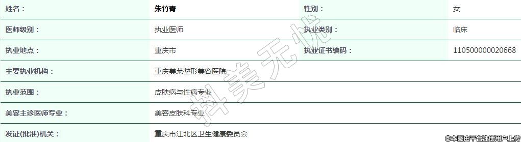 主要執(zhí)業(yè)機(jī)構(gòu):重慶美萊整形美容醫(yī)院