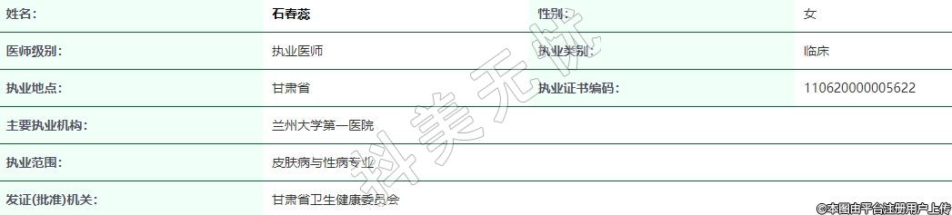 執(zhí)業(yè)范圍:皮膚病與性病專業(yè)