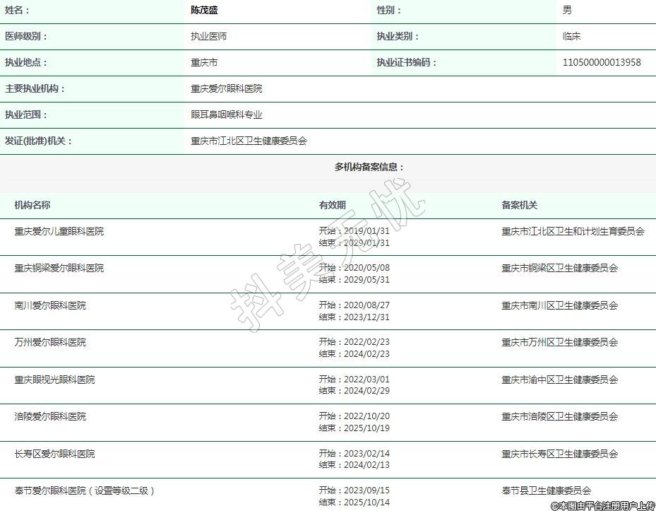 重慶愛爾眼科執(zhí)業(yè)醫(yī)師
