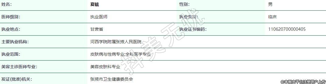 執(zhí)業(yè)范圍:皮膚病與性病專業(yè);全科醫(yī)學專業(yè)