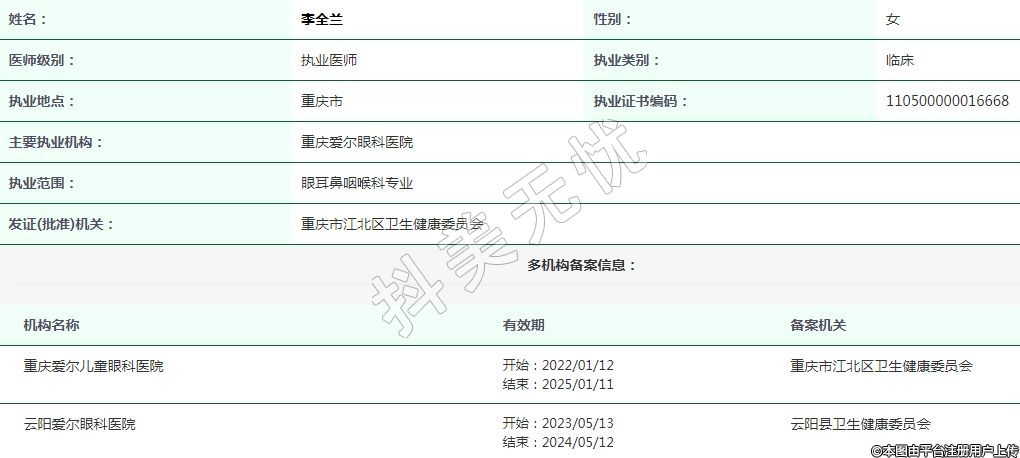 重慶愛爾眼科執(zhí)業(yè)醫(yī)師