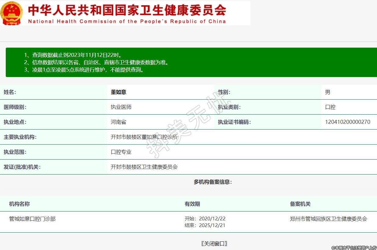 主要執(zhí)業(yè)機構(gòu):開封市鼓樓區(qū)董如意口腔診所