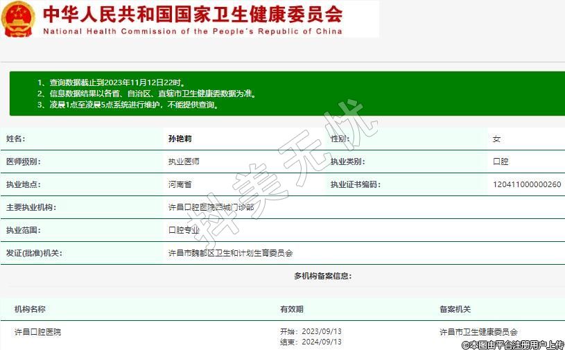 主要執(zhí)業(yè)機構:許昌口腔醫(yī)院西城門診部