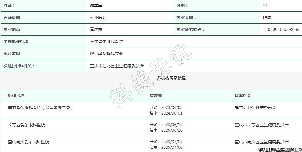 重慶愛爾眼科執(zhí)業(yè)醫(yī)師