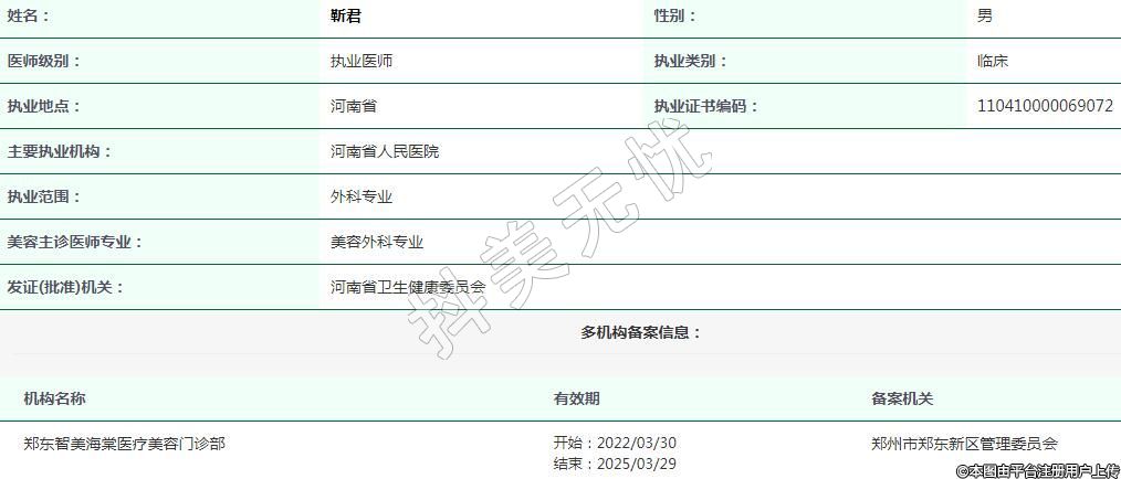 河南省人民醫(yī)院整形美容執(zhí)業(yè)醫(yī)生