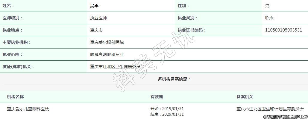 重慶愛(ài)爾兒童眼科執(zhí)業(yè)醫(yī)師 -