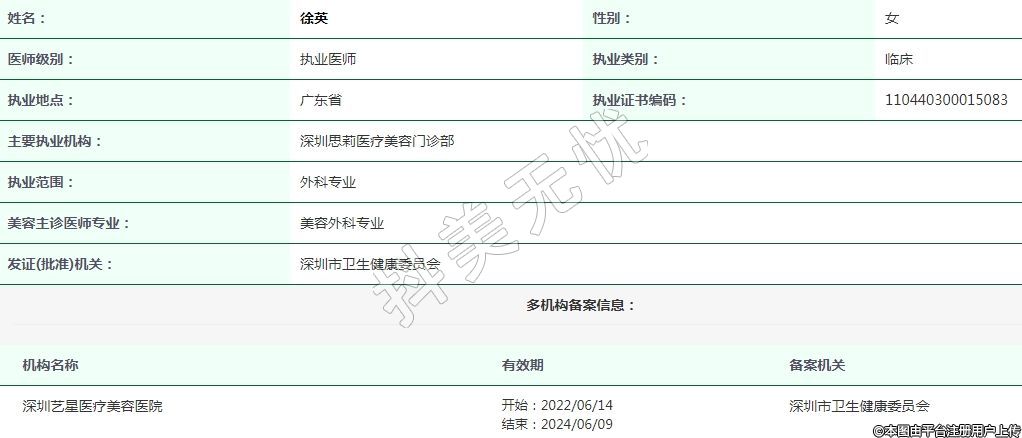 主要執(zhí)業(yè)機(jī)構(gòu):深圳思莉醫(yī)療美容門診部