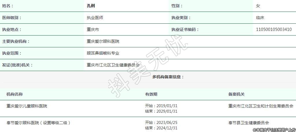 重慶愛(ài)爾兒童眼科執(zhí)業(yè)醫(yī)師