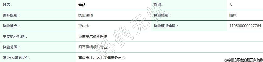 重慶愛爾眼科執(zhí)業(yè)醫(yī)師