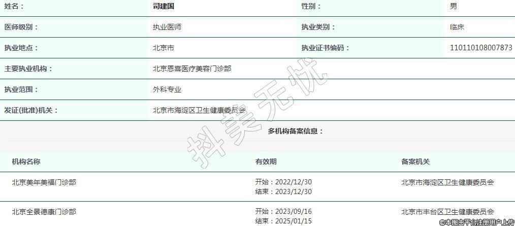 北京恩喜醫(yī)療美容執(zhí)業(yè)醫(yī)生