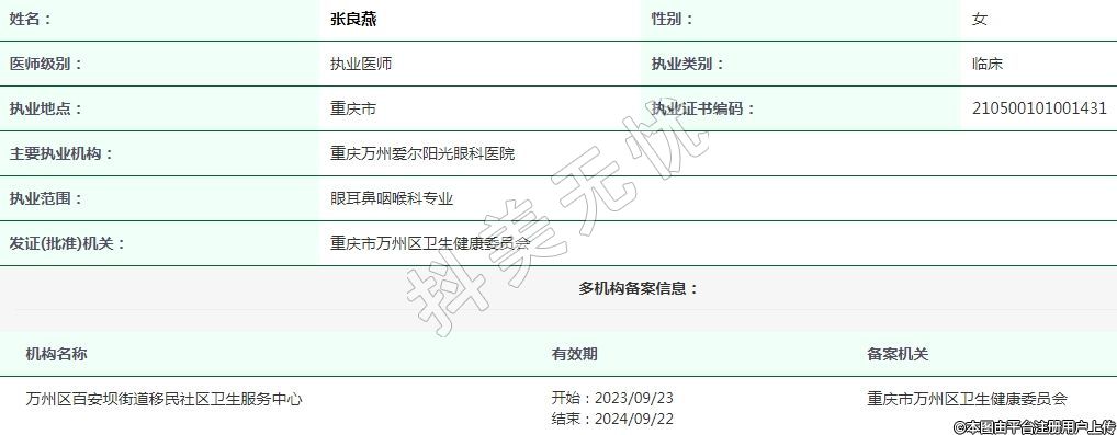 重慶萬州愛爾陽光眼科執(zhí)業(yè)醫(yī)師