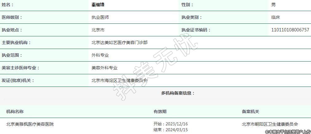 北京達(dá)美如藝醫(yī)療美容執(zhí)業(yè)醫(yī)生