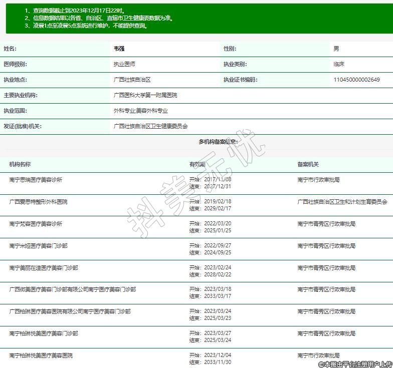 執(zhí)業(yè)范圍:外科專(zhuān)業(yè);美容外科專(zhuān)業(yè)