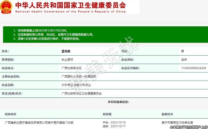 廣西潘多拉醫(yī)療美容投資有限公司南寧醫(yī)療美容門診部