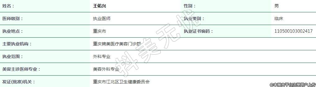 重慶錦美醫(yī)療美容執(zhí)業(yè)醫(yī)師