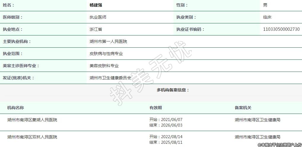 湖州市第一人民醫(yī)院皮膚醫(yī)療美容執(zhí)業(yè)醫(yī)師