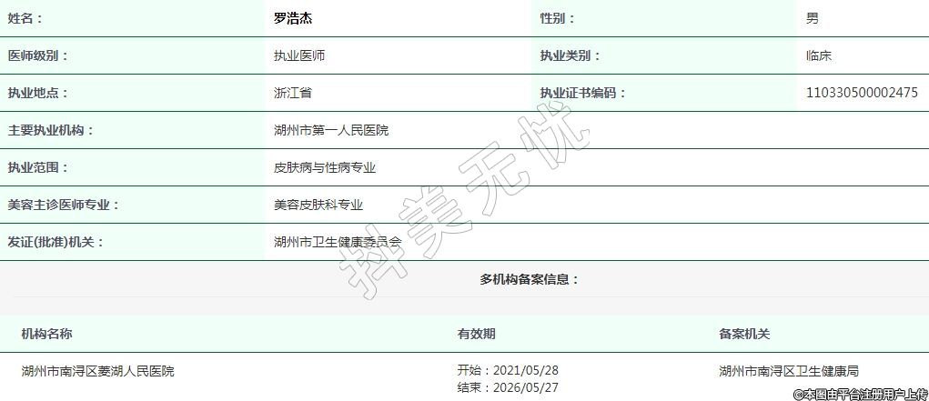 湖州市第一人民醫(yī)院皮膚醫(yī)療美容執(zhí)業(yè)醫(yī)師