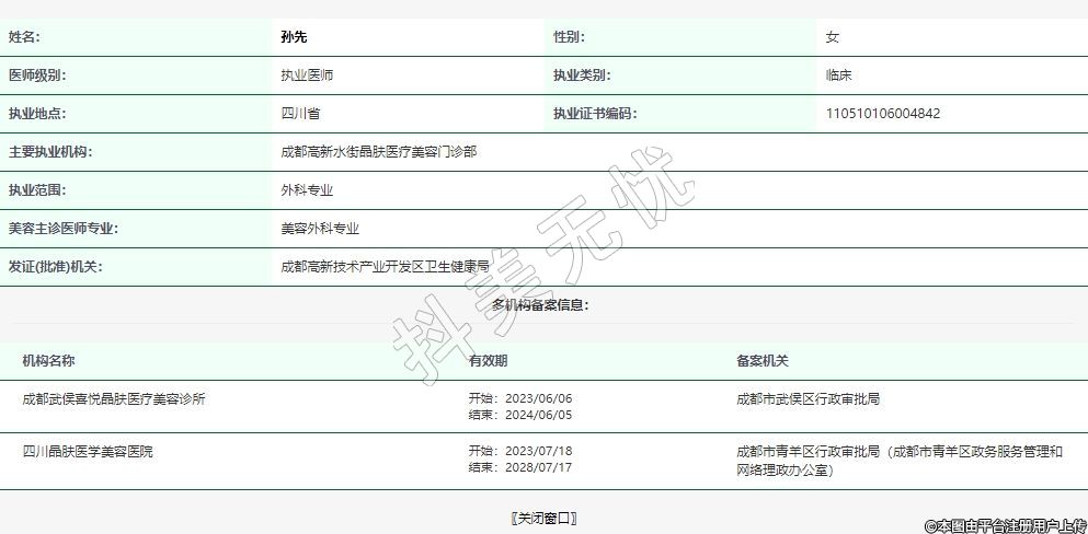 主要執(zhí)業(yè)機(jī)構(gòu):成都高新水街晶膚醫(yī)療美容門診部