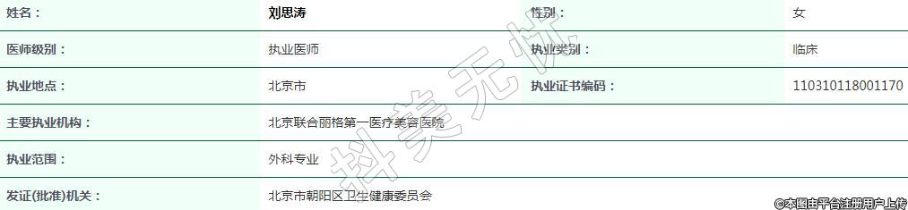 北京聯(lián)合麗格第一醫(yī)療美容執(zhí)業(yè)醫(yī)生