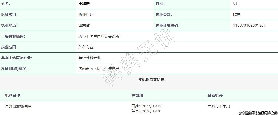 主要執(zhí)業(yè)機構:歷下王醫(yī)生醫(yī)療美容診所