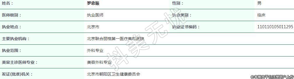 北京聯合麗格第一醫(yī)療美容執(zhí)業(yè)醫(yī)生