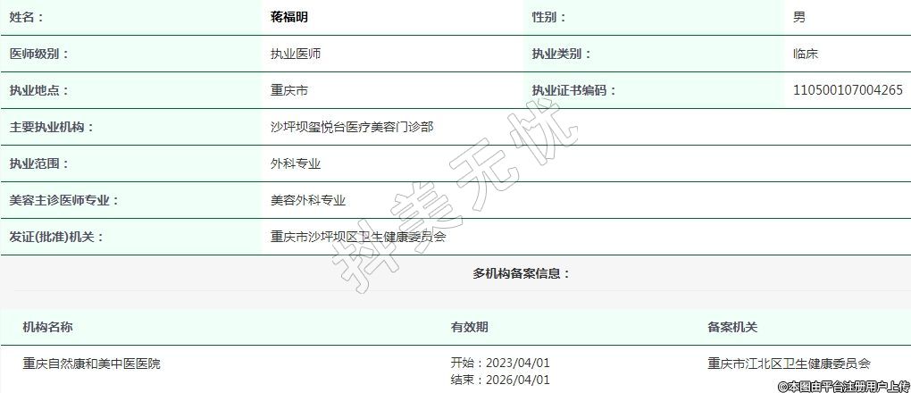 沙坪壩璽悅臺醫(yī)療美容執(zhí)業(yè)醫(yī)師