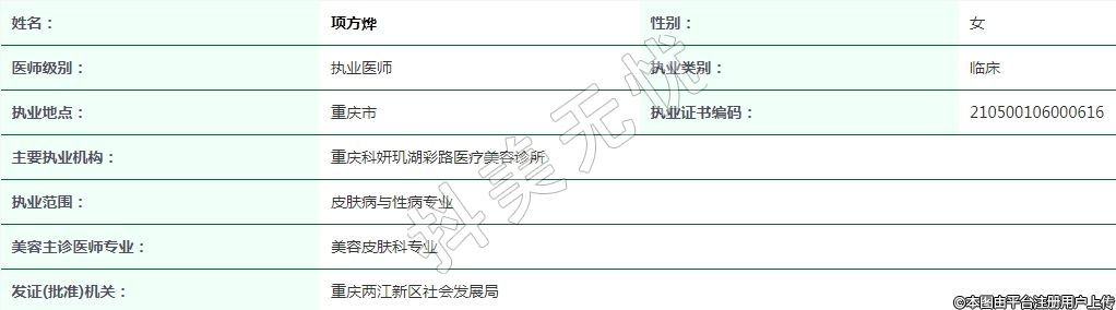 重慶科妍璣湖彩路醫(yī)療美容執(zhí)業(yè)醫(yī)師