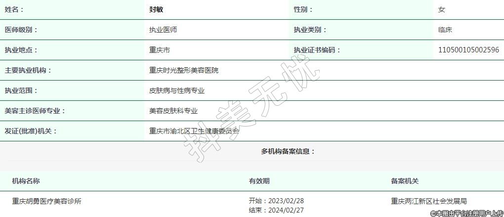 重慶胡勇醫(yī)療美容執(zhí)業(yè)醫(yī)師 -
