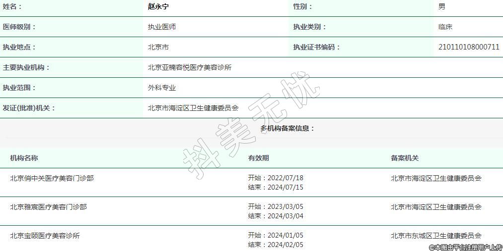 主要執(zhí)業(yè)機(jī)構(gòu):北京亞楠容悅醫(yī)療美容診所