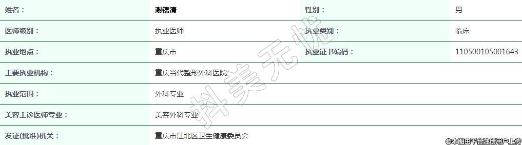 重慶當代整形外科執(zhí)業(yè)醫(yī)師
