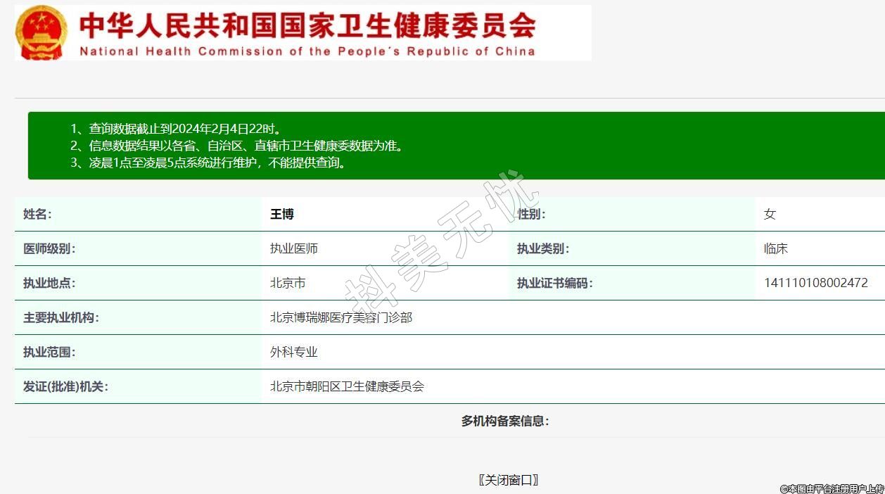 主要執(zhí)業(yè)機(jī)構(gòu):北京博瑞娜醫(yī)療美容門(mén)診部