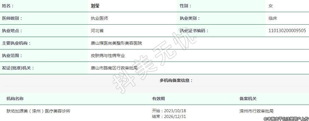 膚佑加源美(灤州)醫(yī)療美容執(zhí)業(yè)醫(yī)師 -