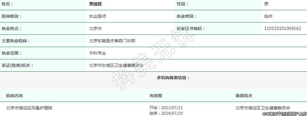 主要執(zhí)業(yè)機構:北京知音醫(yī)療美容門診部