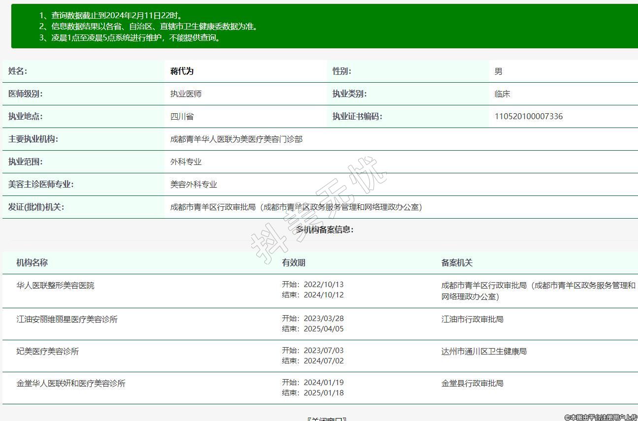 主要執(zhí)業(yè)機(jī)構(gòu):成都青羊華人醫(yī)聯(lián)為美醫(yī)療美容門(mén)診部