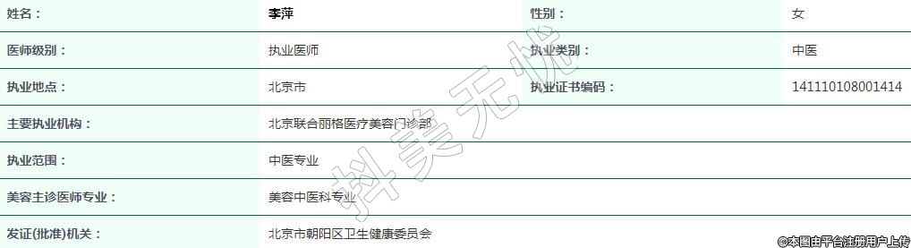 北京聯(lián)合麗格醫(yī)療美容執(zhí)業(yè)醫(yī)生