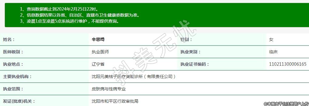 沈陽(yáng)元美桔子醫(yī)療美容執(zhí)業(yè)醫(yī)師