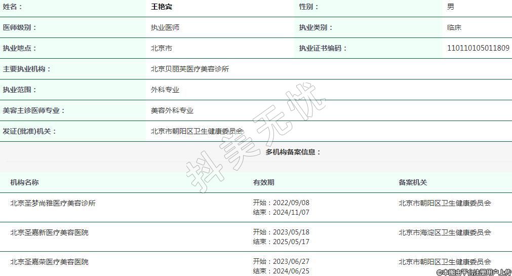 主要執(zhí)業(yè)機(jī)構(gòu):北京貝麗芙醫(yī)療美容診所