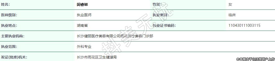 主要執(zhí)業(yè)機(jī)構(gòu):長(zhǎng)沙健麗醫(yī)療美容有限公司雨花醫(yī)療美容門(mén)診部