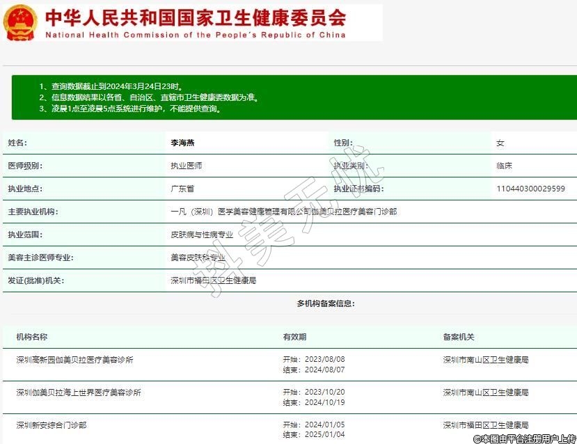 主要執(zhí)業(yè)機(jī)構(gòu):一凡(深圳)醫(yī)學(xué)美容健康管理有限公司伽美貝拉醫(yī)療美容門(mén)診部