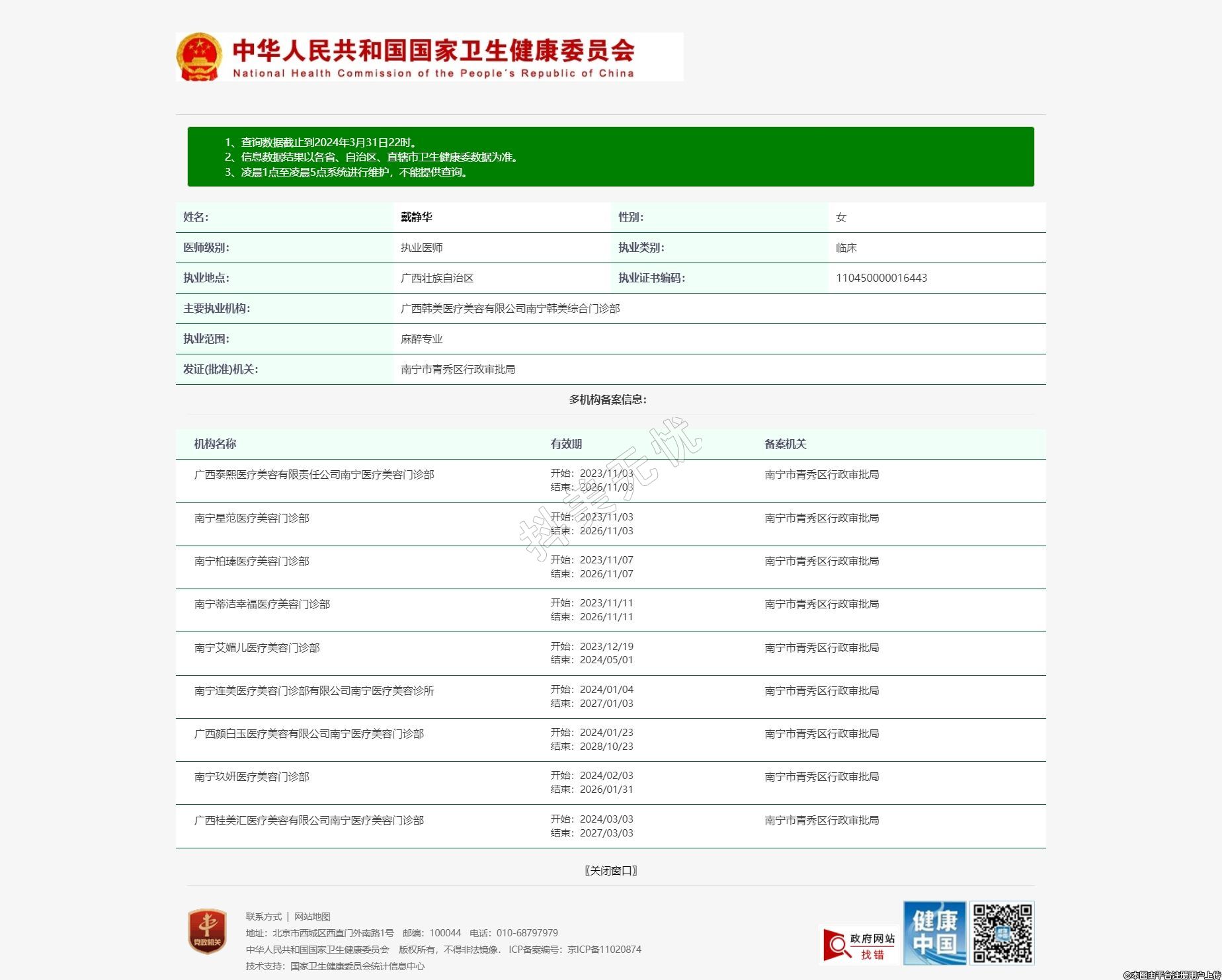 主要執(zhí)業(yè)機(jī)構(gòu):廣西韓美醫(yī)療美容有限公司南寧韓美綜合門(mén)診部