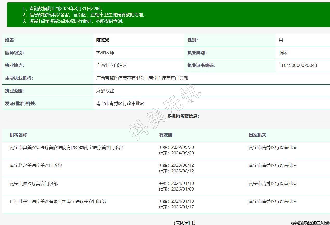 主要執(zhí)業(yè)機構(gòu):廣西奢梵醫(yī)療美容有限公司南寧醫(yī)療美容門診部
