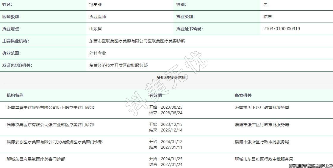 主要執(zhí)業(yè)機(jī)構(gòu):東營(yíng)市醫(yī)聯(lián)美醫(yī)療美容有限公司醫(yī)聯(lián)美醫(yī)療美容診所