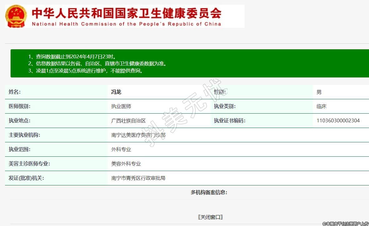 主要執(zhí)業(yè)機(jī)構(gòu):南寧達(dá)美醫(yī)療美容門(mén)診部