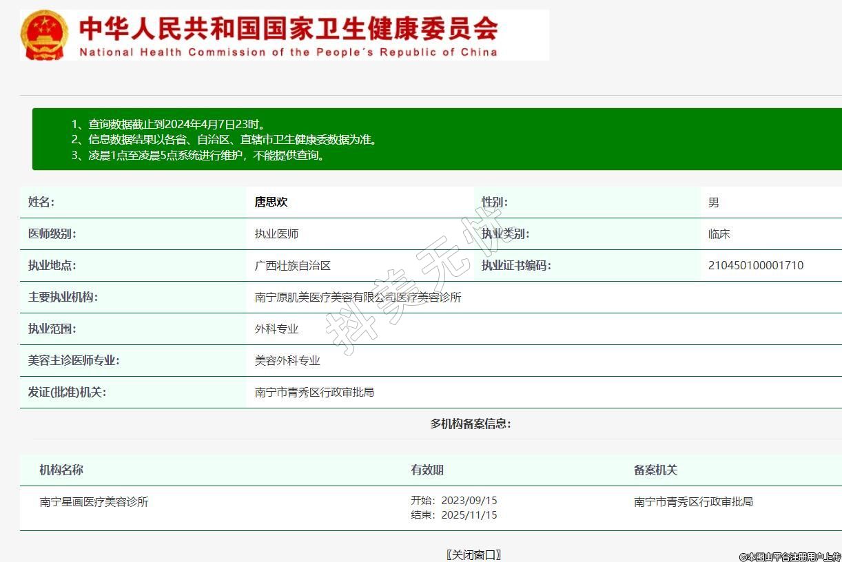 主要執(zhí)業(yè)機構:南寧原肌美醫(yī)療美容有限公司醫(yī)療美容診所