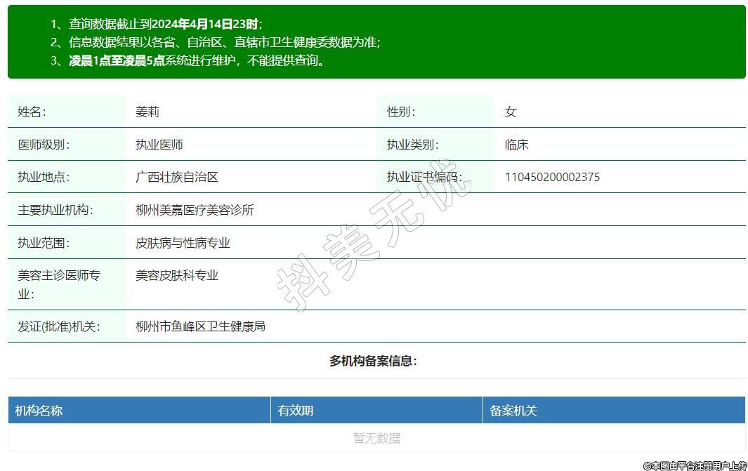 主要執(zhí)業(yè)機(jī)構(gòu):柳州美嘉醫(yī)療美容診所