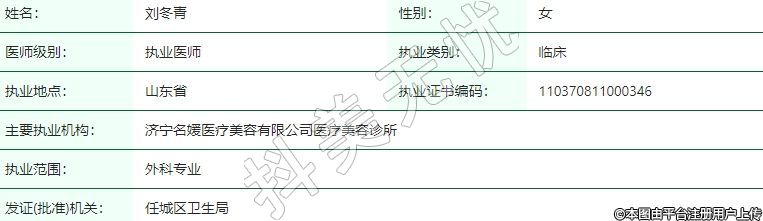 主要執(zhí)業(yè)機(jī)構(gòu):濟(jì)寧名媛醫(yī)療美容有限公司醫(yī)療美容診所