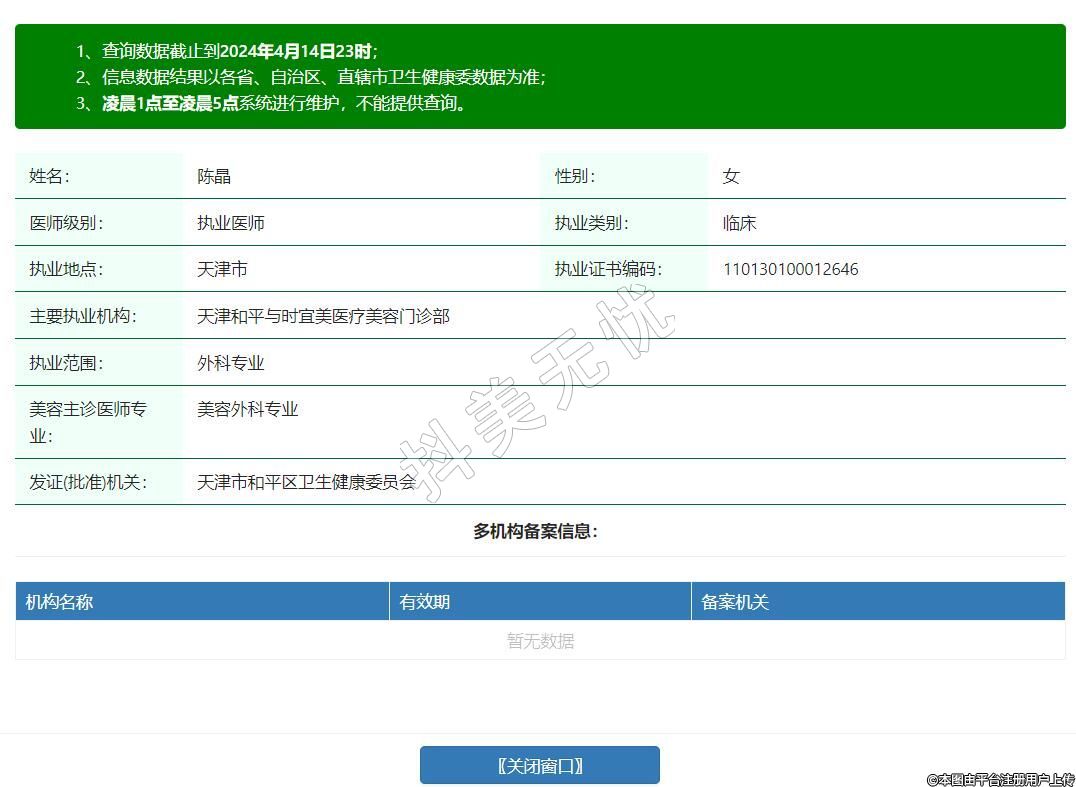主要執(zhí)業(yè)機(jī)構(gòu):天津和平與時宜美醫(yī)療美容門診部