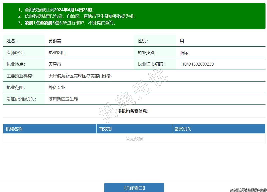 主要執(zhí)業(yè)機(jī)構(gòu):天津?yàn)I海新區(qū)美琳醫(yī)療美容門診部